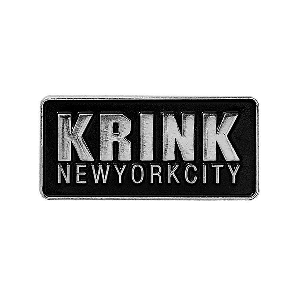 Chrome and black enamel pin featuring the classic Krink logo. 1.5 inches x 0.75 inches...