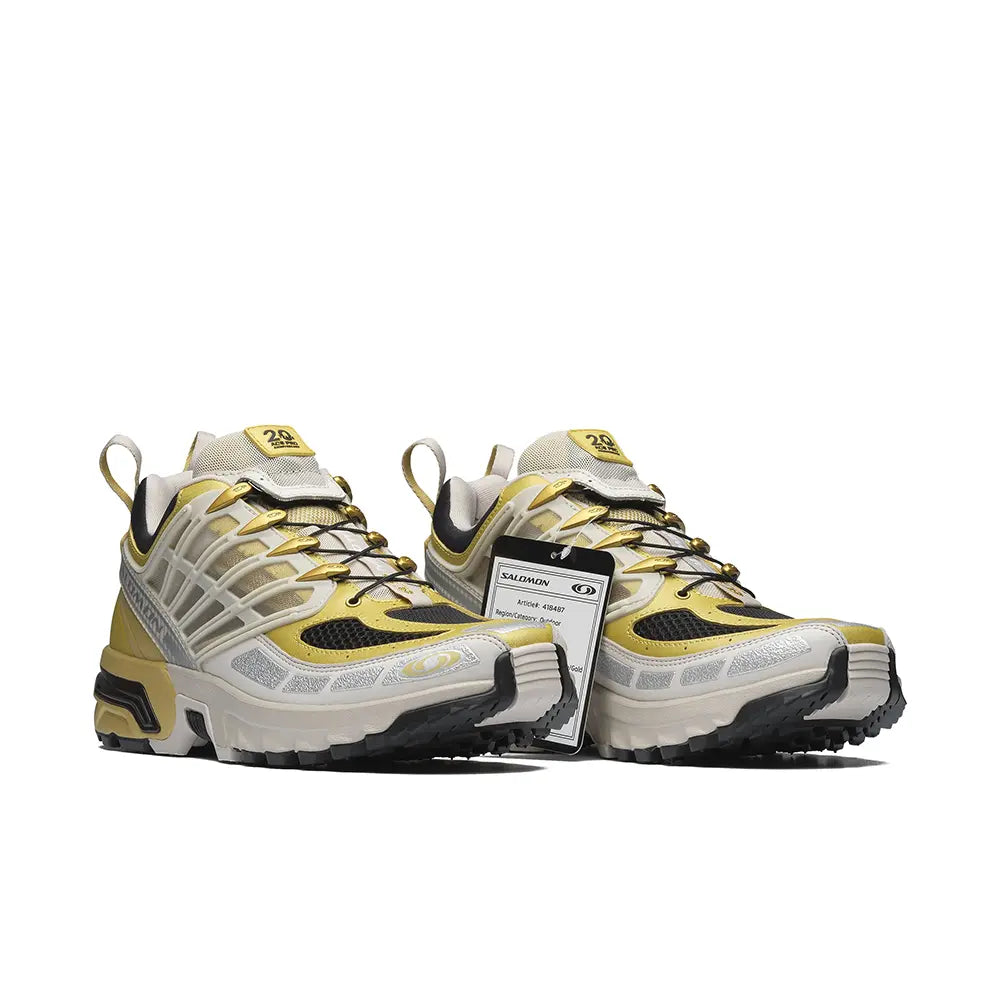 For its 20th anniversary Salomon is releasing the limited-edition Golden Archive ACS Pro. Based on a never-before-released colorway, this model boasts a transparent chassis, carbon-textured cage and special logo. As a nod to the one-off nature of this release, each model is outfitted with a "sample" tag and commemorative gold and black shoe bag.