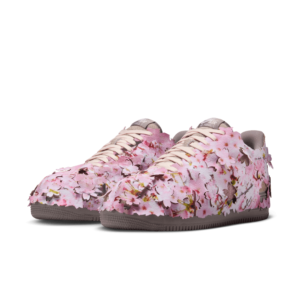Nike created this Air Force 1 '07 to celebrate the colors and changes that come when spring blooms. An overlay shroud features the beautiful colors and shapes of cherry blossoms. Peaking through the shroud is a suede and synthetic leather upper that continues the look with Light Soft Pink and earth tones. What's more quintessential spring than trees full of flowers? Pretty petals on your sneakers.