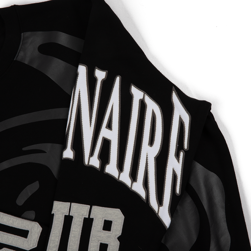 Oversized pullover crewneck featuring the brand’s iconic astronaut logo printed at the chest with sleeve applique detailing and embroidery.