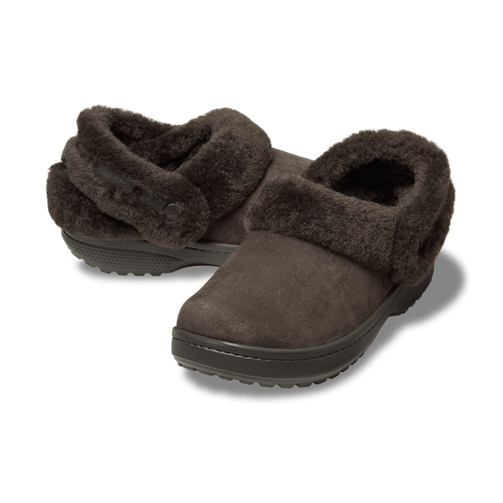 For ultimate cozy comfort and style, check out this faux suede version of the new Classic Unfurgettable Clog. This new style combines the versatility of the Classic Lined Clog with the all-day comfort of Croc's Cozzzy Slipper. The vegan faux suede upper features a faux fur liner, collar and backstrap for the coziness of a slipper, and the versatility of the Croslite™ outsole takes you wherever your day goes. The sink-in soft footbed offers added comfort, while the faux fur backstrap features Jibbitz™ holes for personalization. Slip into the Classic Unfurgettable Vegan Suede Clog to maximize cozy comfort and style as you go about your day.