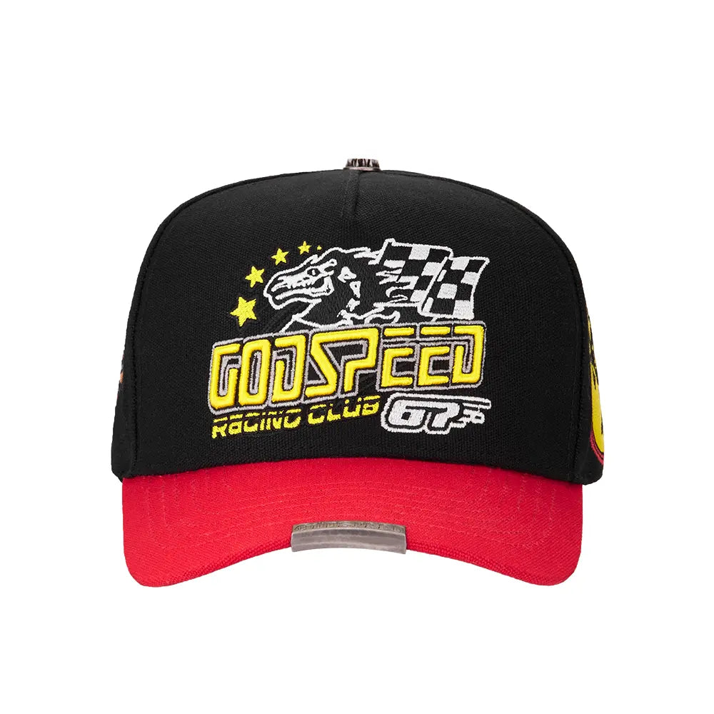 The Godspeed Racing Club Members trucker hat is now available in a limited-edition box + a 3-piece pin set.