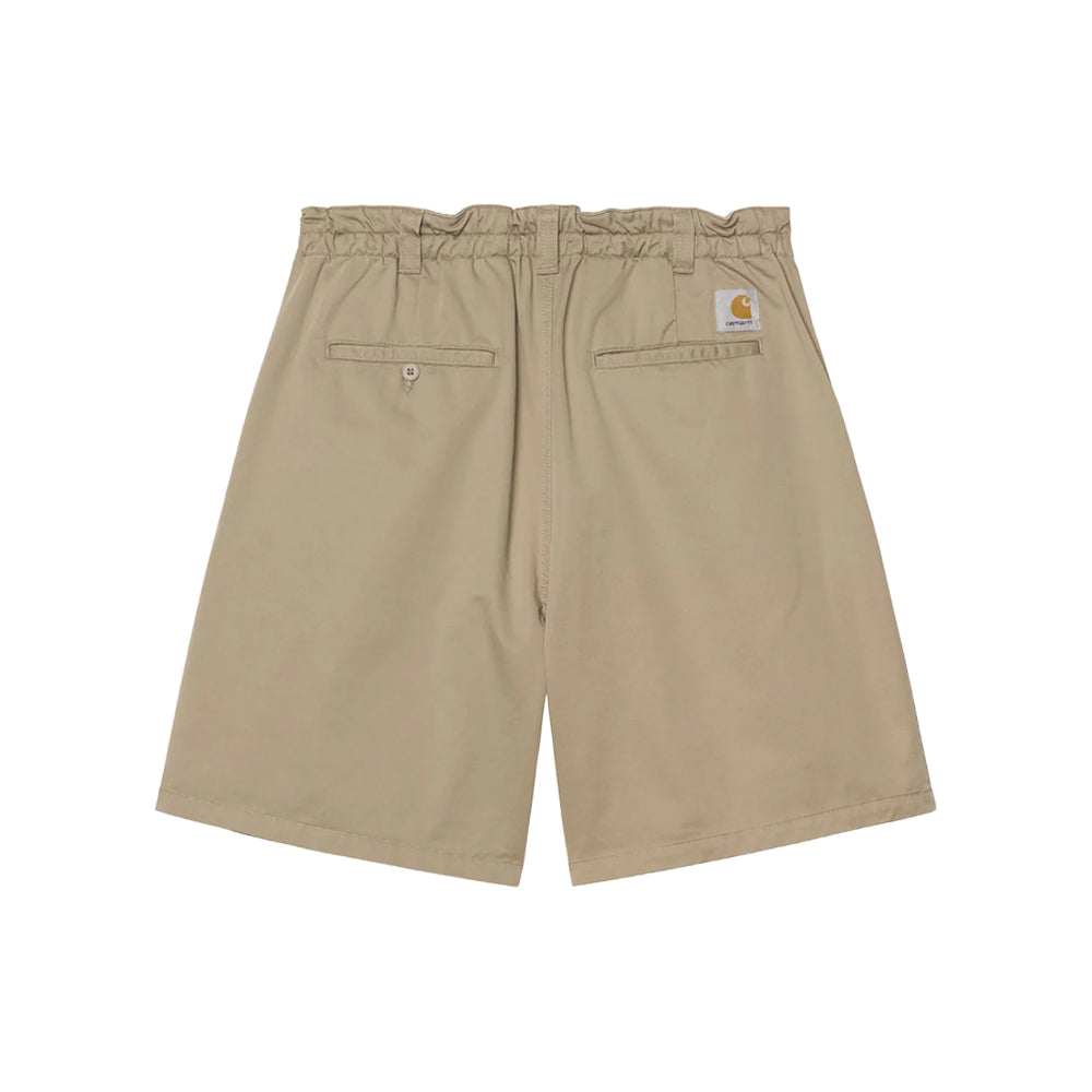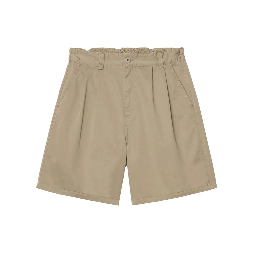 The Marv Short is made from midweight cotton twill and has a loose fit, which is further accentuated by front pleats at the legs. The item features an elasticated waistband detail at the back. A woven Square Label completes the design.