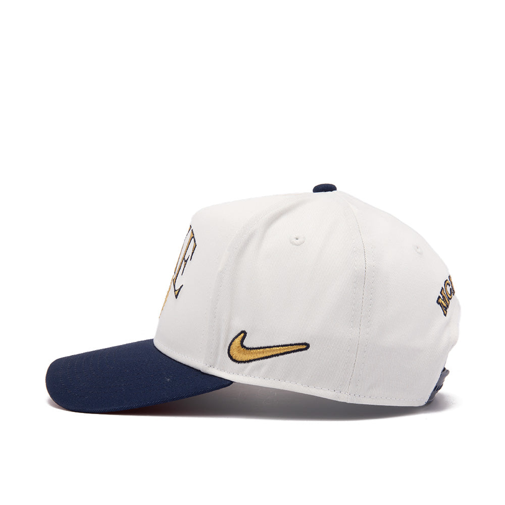 This Rise cap has a high-depth with a sharp peak and square sides for an ultra-structured look. This fit is paired with nostalgic graphic hits of Nike, the Goddess of Victory and 1972 in Roman numerals. The snapback closure lets you find the perfect fit.